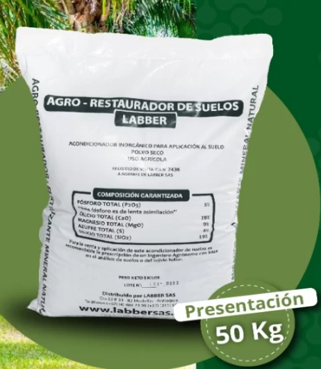Mezcla proporcional de minerales naturales con altos porcentajes de elementos esenciales (macro y micro nutrientes) para el suelo